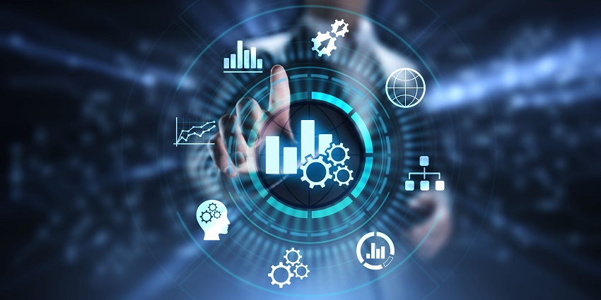 Business analytics intelligence analysis BI big data technology concept.