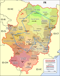 Figura 3. Comarcas de Aragón y sus capitales. Extraída de https://es.m.wikipedia.org/wiki/Archivo:Comarcas_de_Arag%C3%B3n.svg